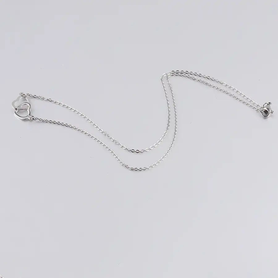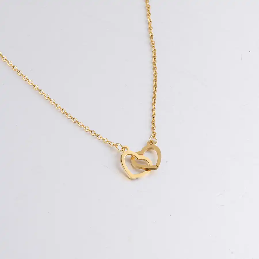 Two hearts decorated with Cubic Zirconia stones are interlocked as a symbol of never ending love.