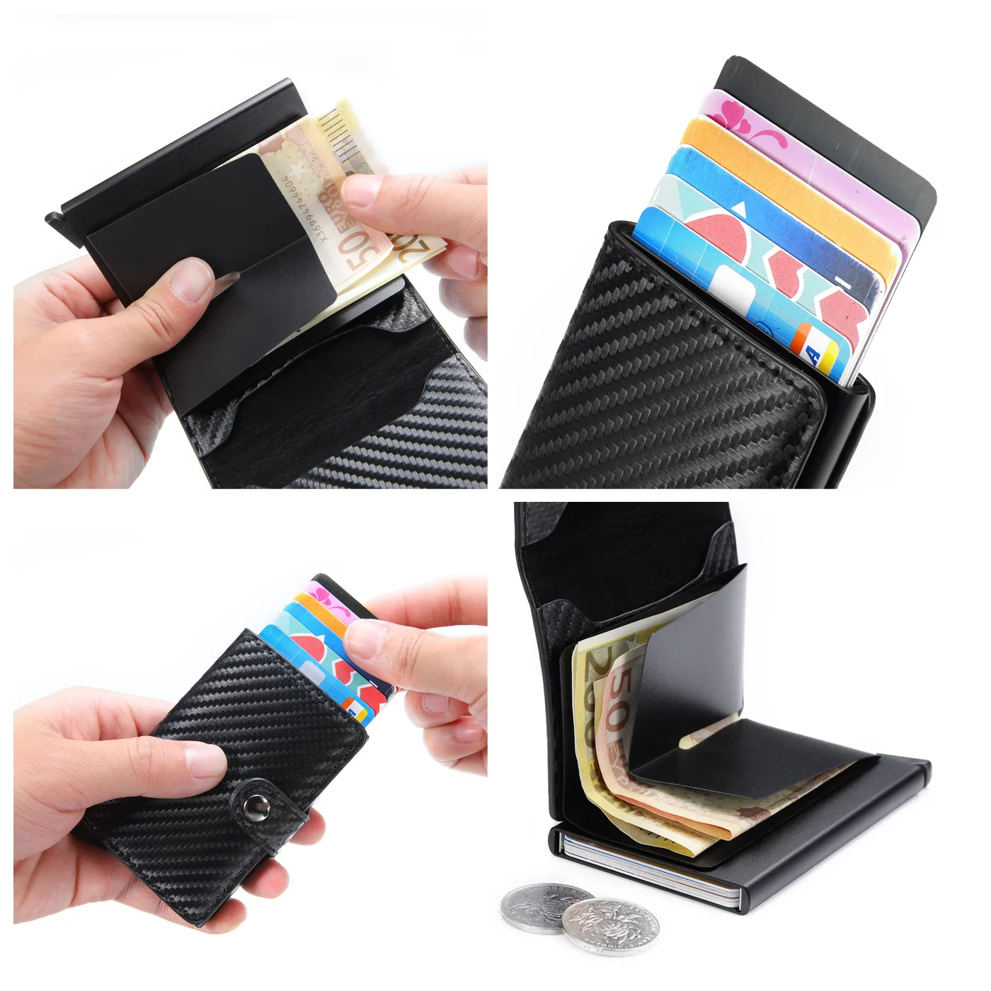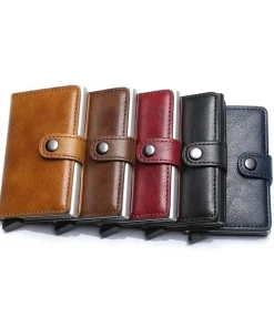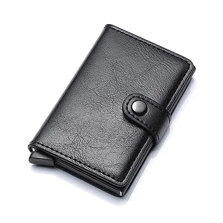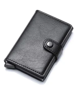 ID Credit Bank Card Holder with Hasp Wallet Men Anti Rfid Blocking Protected Magic PU Leather Slim Mini Small Money Wallets Case