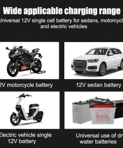 - Universal for most type of car and motorcycle batteries, lead acid, agm, gel, vrla. battery)
