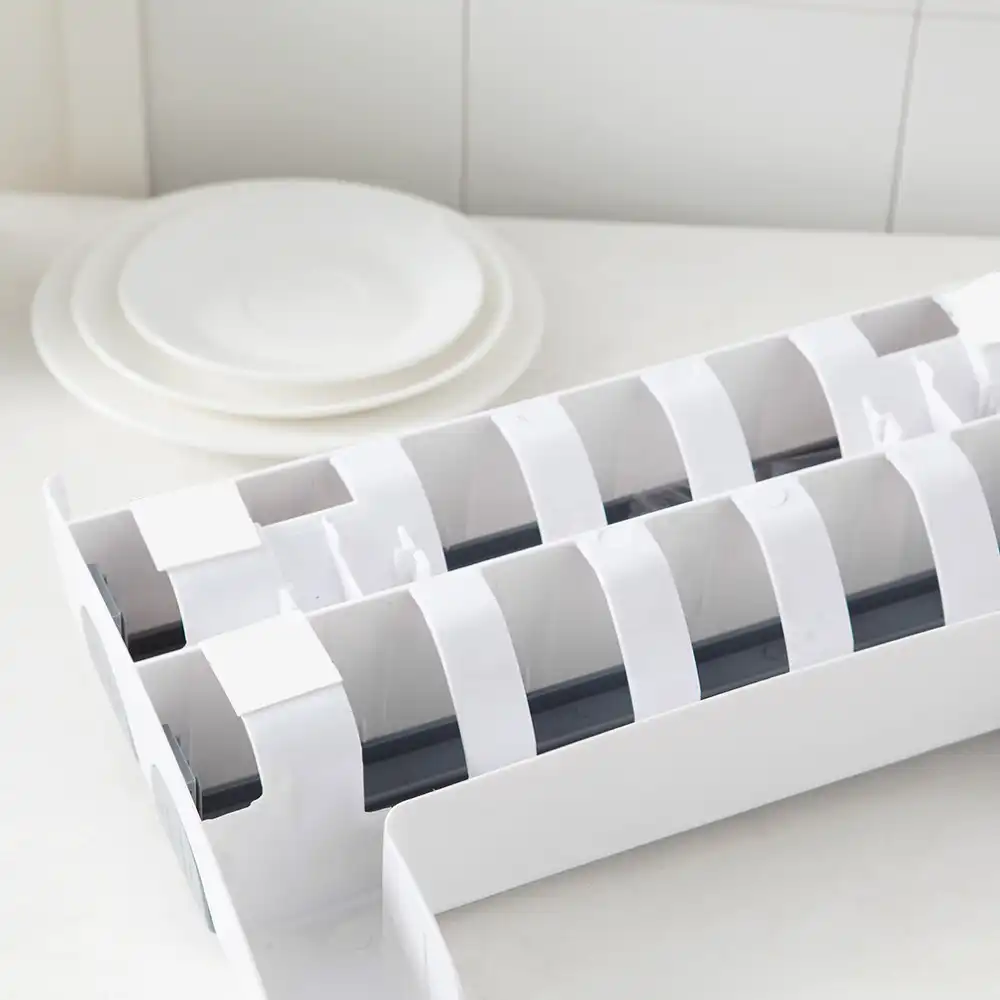 - Both roll containers are equipped with razor-sharp blades that cut through the foil neatly.