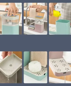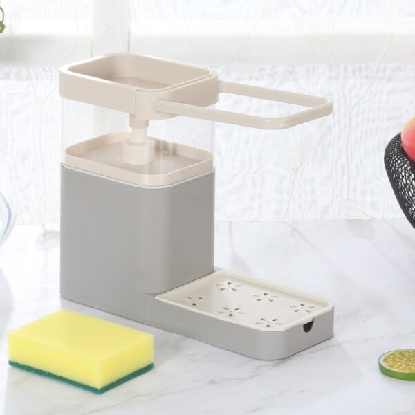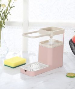 ALL-IN-ONE CONVENIENCE: 4-in-1 Countertop Soap Pump features a dish towel hanger, soap pump, sponge caddy, and a drain rack. The 4-in-1 design keeps your sink organized making your washing experience as easy.