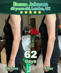I drink it twice a day โ just mix it into water โ and every time, I feel this gentle warmth all over my body. Iโm not kidding, I notice changes almost every other day! I started on August 25th, kept doing it twice a day, plus a bit of sunscreen โ thatโs literally all. Itโs so simple and works so fast! My dark spots, rosacea, wrinklesโฆ even my hair looks so much better now. This is honestly a full-body booster, and I donโt think I can go a day without it anymore. I feel absolutely amazing, and I 100% recommend it!ย ย —ย Deborah Collins