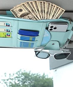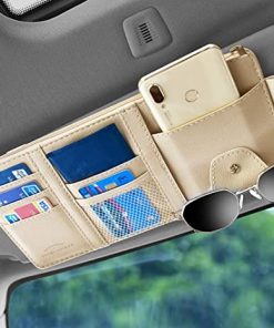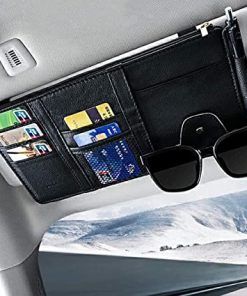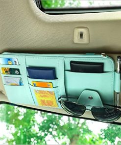 1 large zippered compartment, 1 mesh deep sliding pocket, 5 card pockets and 1 Glasses clip. Perfect for storing your phone, sunglasses, cables, documents, cards, pens, charging cable, earphone, CD and more. it is a great storage space to save space