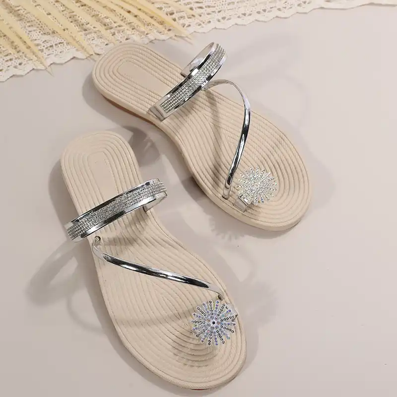 New Shiny Flat Shoes Rhinestone Flip-Flops has the following product features: