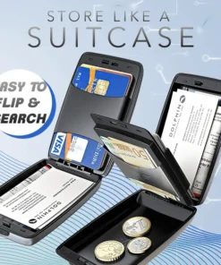 Inspired by structure of suitcase, our design allows users to organize items in layers rather than creasing important receipts/notes in traditional bifold wallets. Made of premium, high-glossy Aluminium, which is more sturdy, waterproof and wear-resistant than leather.FEATURES: