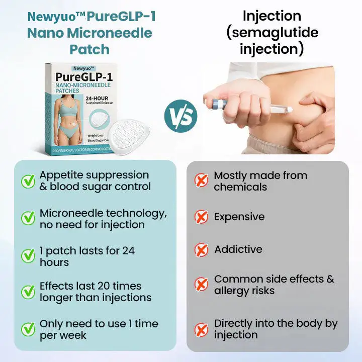 Newyuo™ PureGLP-1 Nano Microneedle Patch delivers 24-hour smart release to mimic GLP-1—helping balance blood sugar, suppress appetite, and slow gastric emptying. No pills, no needles. Just stick it on and feel the difference in 7 days. Your journey to better health starts here!