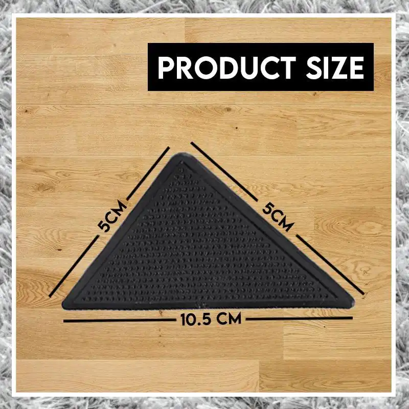 Made of ruggies rug grippers in triangular shape, perfectly fit carpet corners. Strong adhesion keep carpets firmly in place and flat.