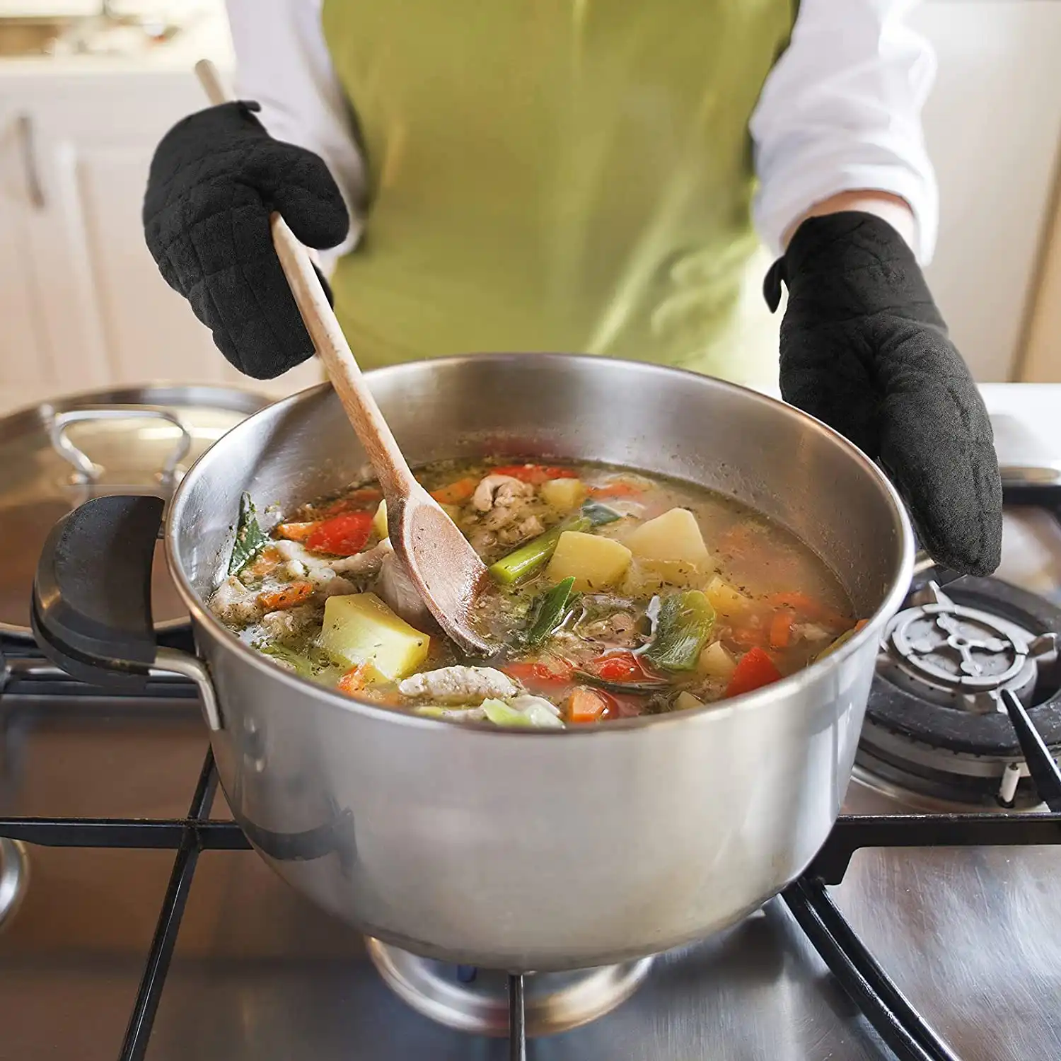 Easily manage hot food in your kitchen or barbecue as grill mitts, oven mitts and at the campsite. Protect your hands and avoid accidents with insulated waterproof five-finger gloves.