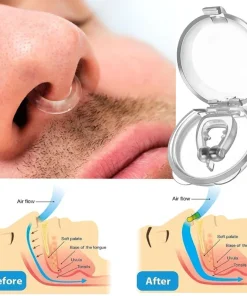 1. Before sleeping, please fully insert the spherical parts at both ends of the snoring device into the nostrils, with the raised positioning edge pressed tightly above the lips.