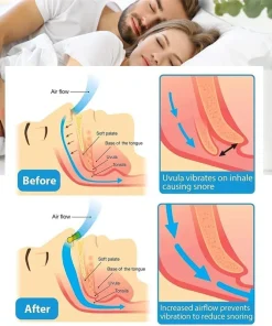 Air ducts are added on both sides of the snore arrestor to make breathing more smooth, and the snore arrestor is attached to the nasal septum by the principle of aerodynamics.