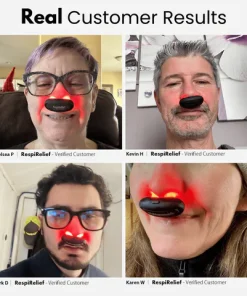 The Nurbini™ RespiRelief Red Light Nasal Therapy Device can enhance breathing by addressing various respiratory issues that may be causing difficulty in breathing or discomfort. The device utilizes low-level red light therapy, which has been shown to have several benefits for respiratory health. Like reducing inflammation, clears nasal congestion, and better oxygen exchange for a more efficient breathing.
