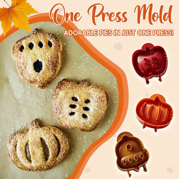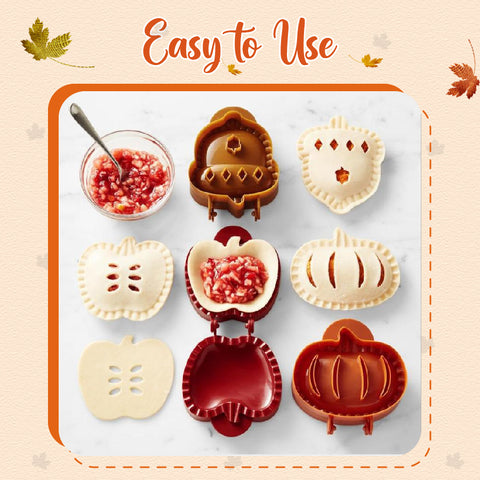 Creatively designed to help you make pocket pies with ease. Expand your fall baking repertoire with pocket pies in festive apple, pumpkin, and acorn shapes. Effortlessly create your own perfect party with this cute mold set! Made of BPA-free ABS plastic material, which is food grade and durable. The hinged molds make it easy to cut the dough out and stick it into elegant hand pies filled with your favorite sweet or savory fillings.