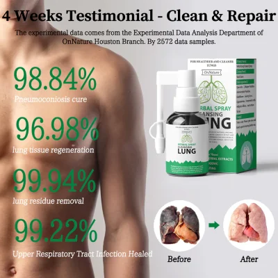 OnNature® Organic Herbs Lung Cleansing&Throat Relief Mouth Spray is inhaled through the mouth, then absorbed through the trachea, stimulates and dilutes the mucus in the trachea and lungs, and helps expel phlegm and lung residues within 2 hours, unblocking your breathing passage. It can also help correct your immune system to reduce allergic reactions through desensitization therapy, effectively treating respiratory allergies/asthma and other diseases. Dr.Lonnie’s research team’s original recombinant collagen peptide combined with quercetin helps the regeneration of lung trachea and alveolar tissue and gives you a healthy, unobstructed lung.