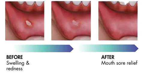 The Mouth Ulcer Spray forms a micro-thin, protective coating over the mouth sore, creating a barrier against irritants like food and drink, while providing long-lasting pain relief without numbing the area.