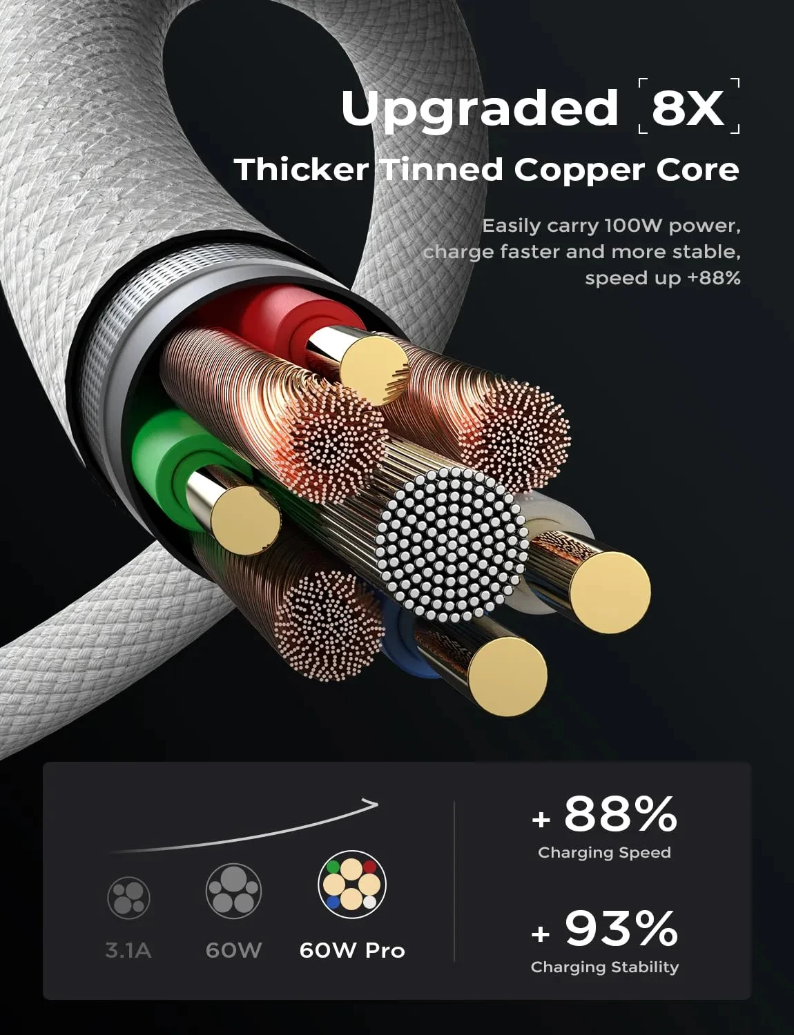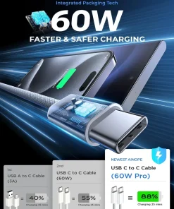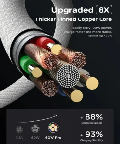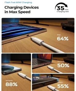 This usbc to usbc cable support PD3.0/QC3.0/QC4.0 fast charging up to 65W Max (20V/3.25A) / 60W (20V/3A) with USB-C Power Delivery adapters such as 30W/45W/60W
