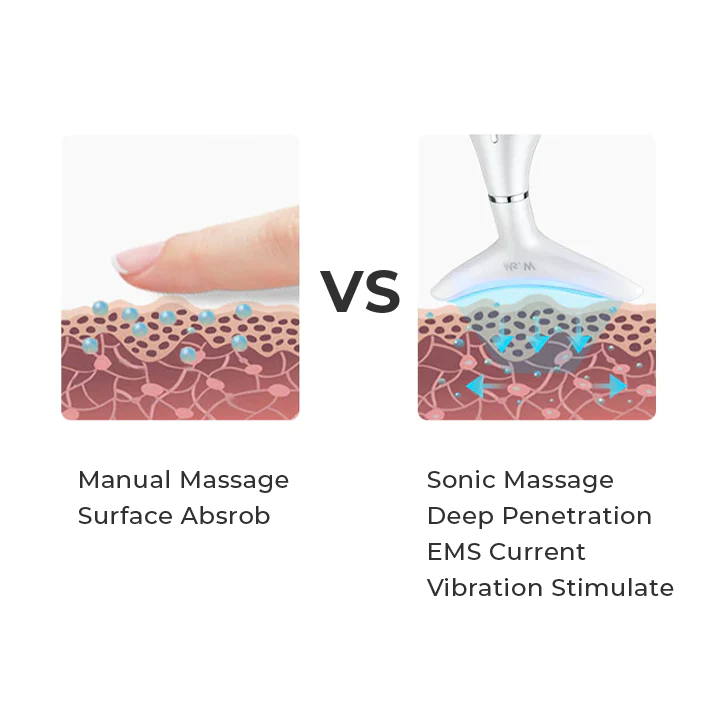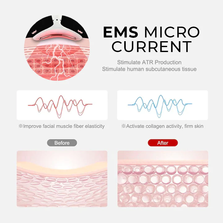 As the face lifting tool gently messages, it stimulates facial muscle strength and dilates skin microvessels, which then increases blood circulation and encourages collagen production. The whole process provides instant and long-term age-defying results, from a boost in skin radiance to increase in firmness and elasticity.