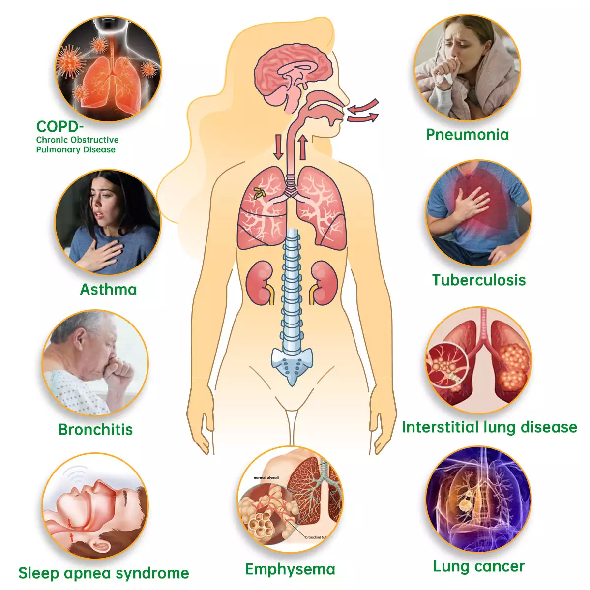 Did you know that 40 million people worldwide suffer from respiratory diseases? The causes vary, but common factors like aging, smoking, alcohol use, air pollution, and occupational hazards contribute to the decline of lung function. Over time, toxins from smoking and environmental pollution accumulate in the lungs, thickening mucus and making it harder to expel. This buildup leads to blockages, worsening conditions like Chronic Obstructive Pulmonary Disease (COPD), asthma, pneumonia, tuberculosis, and even lung cancer.