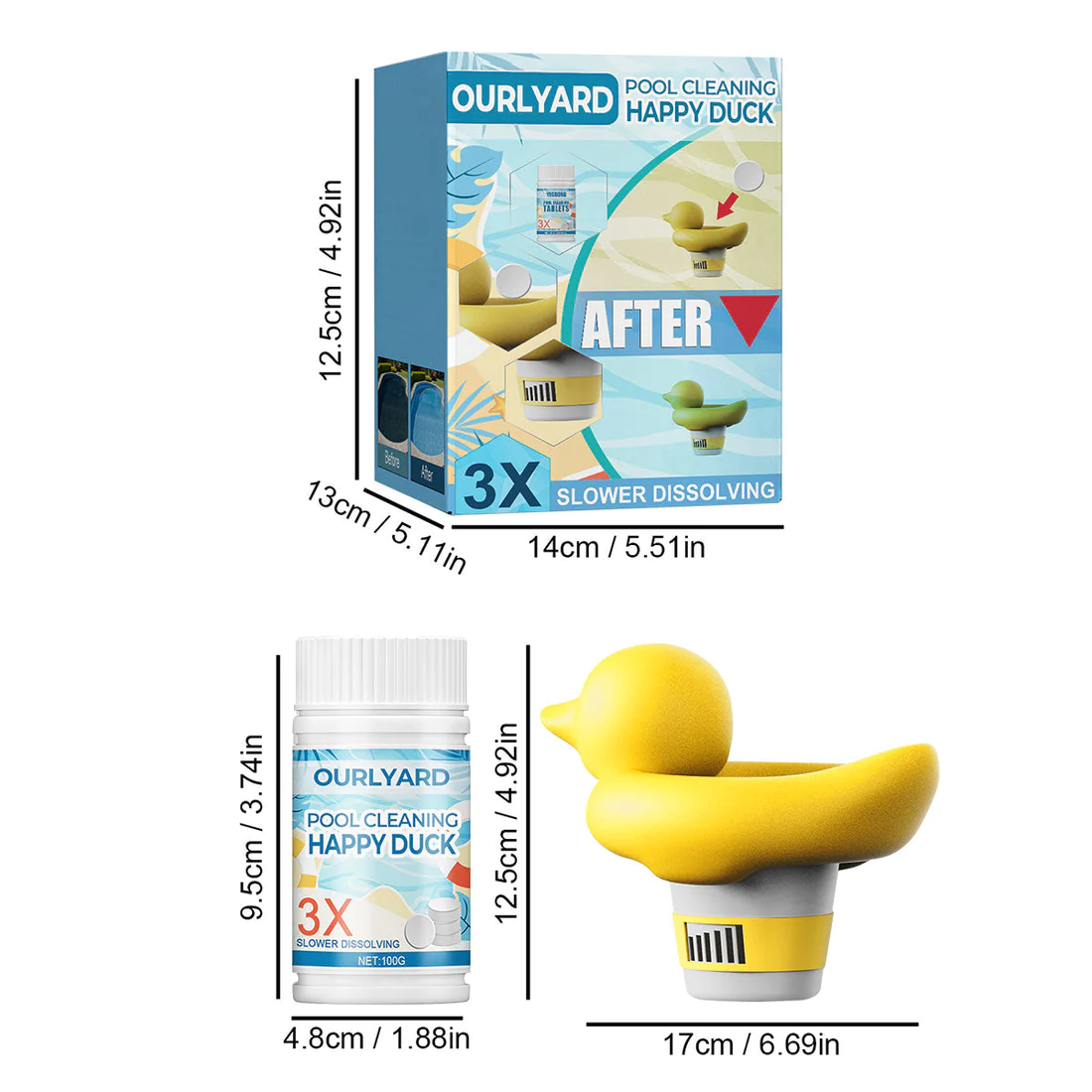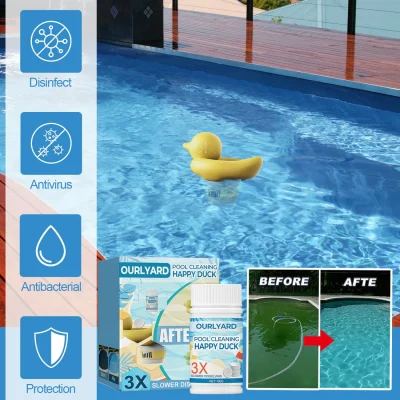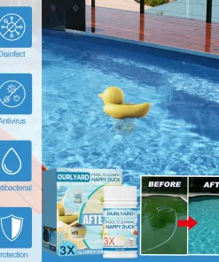 This is a professional and effective pool cleaning solution that eliminates pool bacteria thoroughly using safe ozone tablets. It can quickly remove impurities from the water and adjust the pH level to 7.4-7.6, maintaining a balanced water quality to prevent algae and any dirt! The Ourlyard™ Pool Cleaning Happy Duck creates a safer, healthier, and more enjoyable swimming experience for your pool! Let’s get started now!