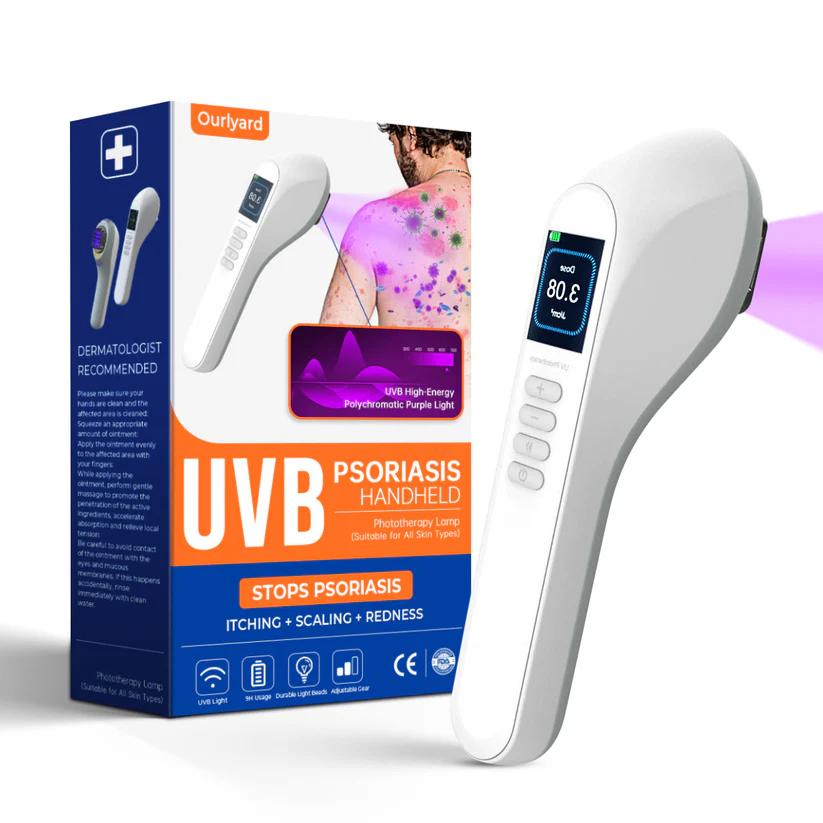 The Ourlyard™ Psoriasis Handheld UVB Phototherapy Lamp offers an innovative solution, allowing you to comfortably treat psoriasis in the comfort of your own home. This device utilizes advanced UVB phototherapy technology, combined with a portable handheld design, providing a convenient and private option for addressing psoriasis. Its unique combination of wavelengths, including invisible UVB light, presents a promising tool for those seeking non-invasive and accessible methods for achieving skin health.