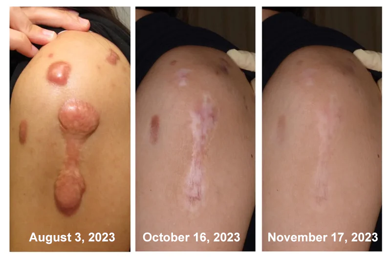 A scar can be flattened, smoothed, or the color removed with Ourlyard™ Salicylic Acid Scar Diminishing Gel. The Gel helps flatten the elevated tissue by gradually destroying scar tissue. With this product, the scar’s size, redness, hardness, and irritation are all reduced. Leaving no scars on your skin!