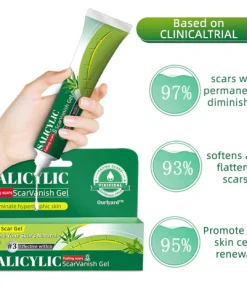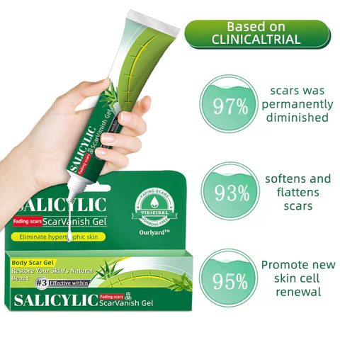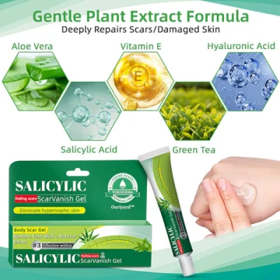 Ourlyard™ Salicylic Acid Scar Diminishing Gel improves the look of the skin and helps it heal by promoting the growth of new tissue by lowering pigment and scar tissue. This speeds up the creation of new skin cells and minimizes discomfort. It improves the health of a person’s skin. By providing moisture to soften the top layer of skin, creating a barrier to keep moisture in, and assisting cells in regenerating and remodeling the connective tissue underneath the scar,Ourlyard™ Salicylic Acid Scar Diminishing Gel has qualities that lessen strain on the scar.