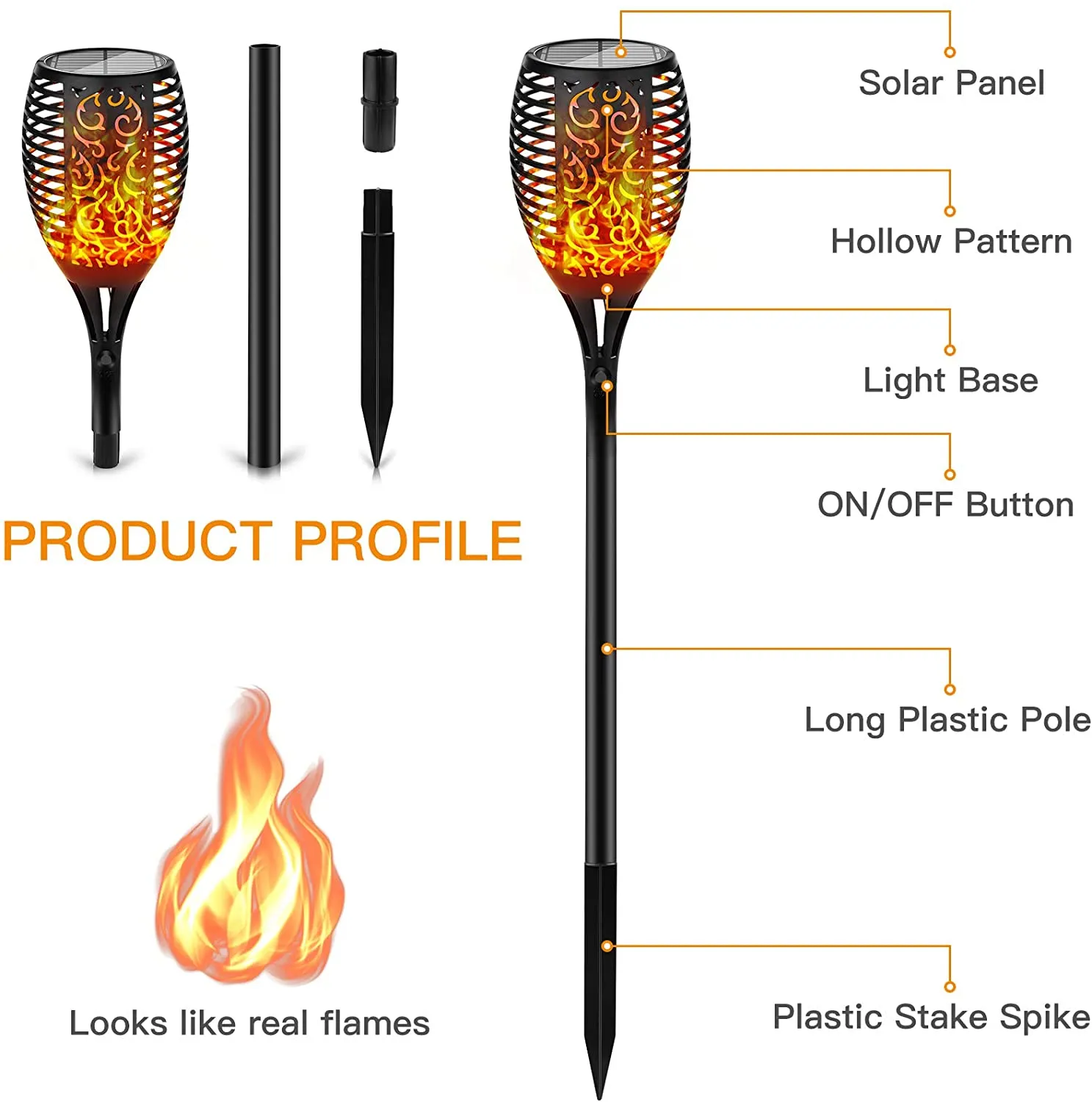 Outdoor Solar Flame Torch Lights has the following product features: