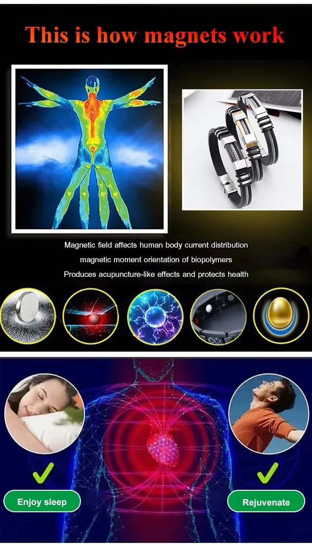 Health Oveallgo™ infrared magnetic therapy bracelet! A magnetic health bracelet that promotes blood circulation, reduces fatigue, and strengthens immunity! Boost energy and promote health! Prevents fatigue, aids in sleep, burns fat, and supports metabolism!