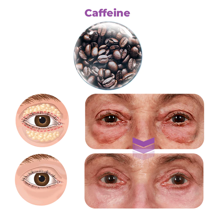 Caffeine provides a rejuvenating boost, not only to your alertness, but to the skin around your eyes too. According to Dr. Lorna, LD, board-certified dermatologist at Mount Sinai Hospital, caffeine acts as a vasoconstrictor, tightening the blood vessels and reducing sagging and swelling around the eyes, resulting in a firmer, more youthful appearance. Research has also shown that caffeine neutralizes free radicals from DNA damage and harbors anti-inflammatory properties, both of which can contribute to improved eye texture and decreased sagging.