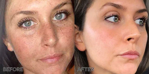 - Gently massage the serum onto your face and neck, focusing on areas with dark spots, fine lines, and wrinkles.