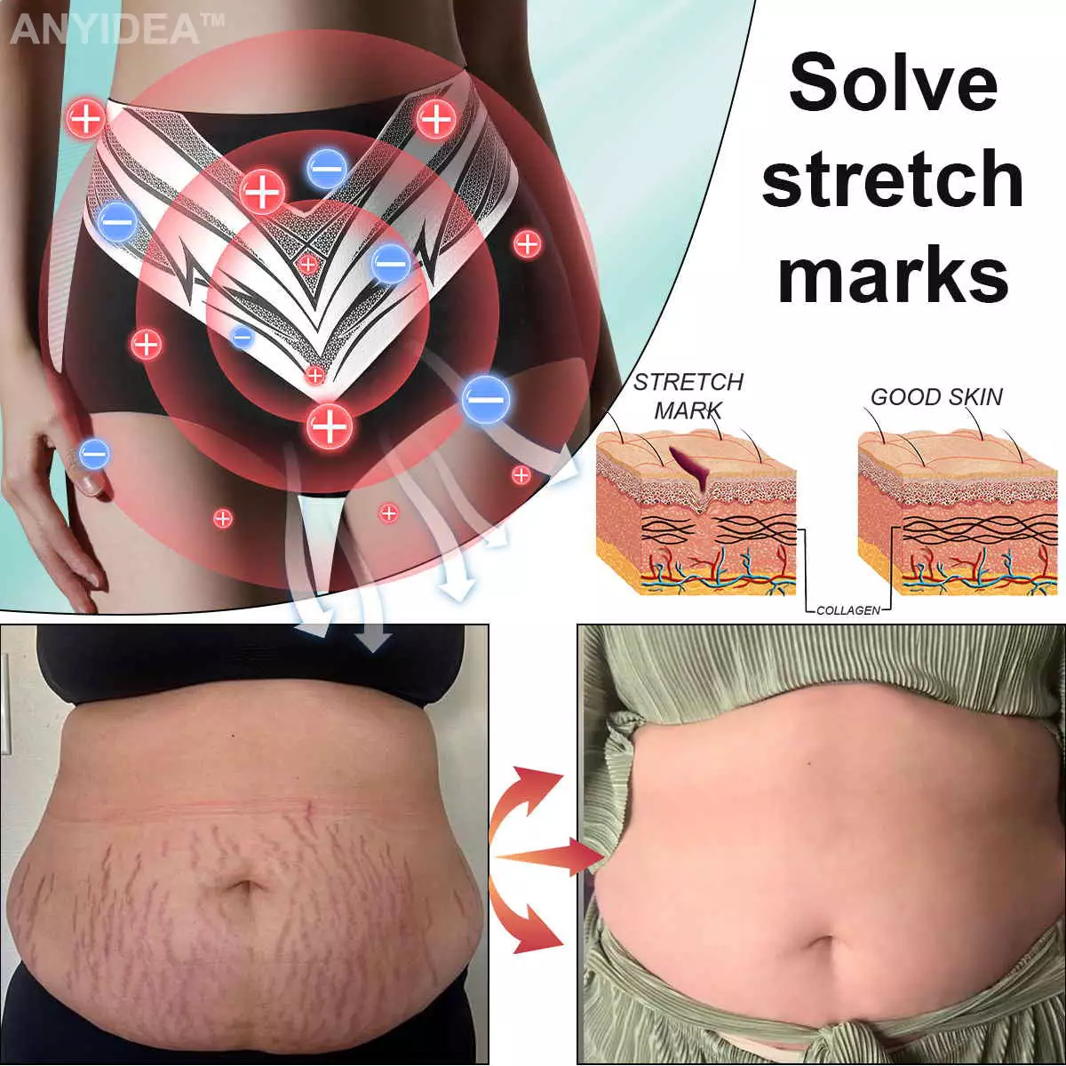 Scars and stretch marks from pregnancy or weight changes are visibly reduced with regular use of these shorts. FIR boosts collagen production. helping fade scars and improve skin elasticity. By the third week. negative ions accelerate skin regeneration and improve circulation. resulting in smoother. more even-toned skin. This dual-action method effectively fades scars and stretch marks.