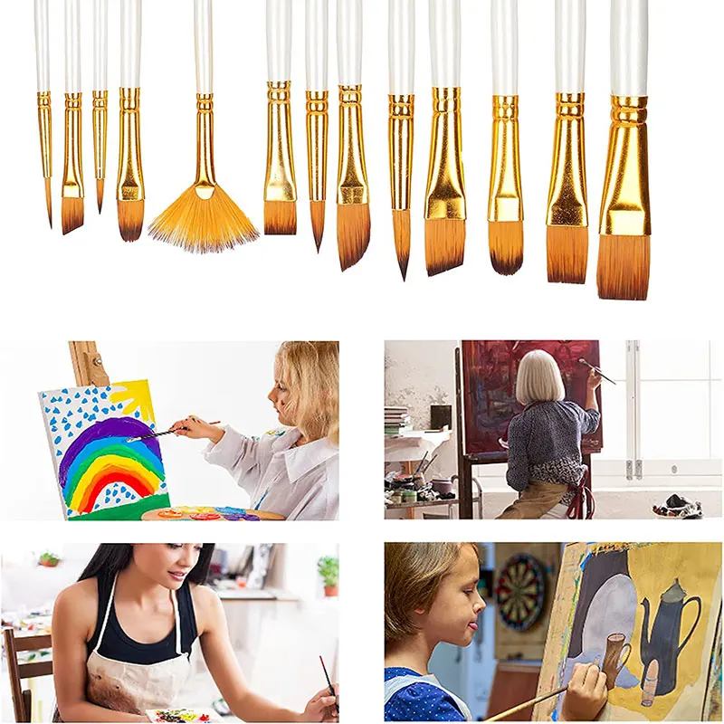 13Pcs Painting Brushes Set Artist Painting Brush for Oil Acrylic Watercolor Gouache Paint Professional Artist Supplies