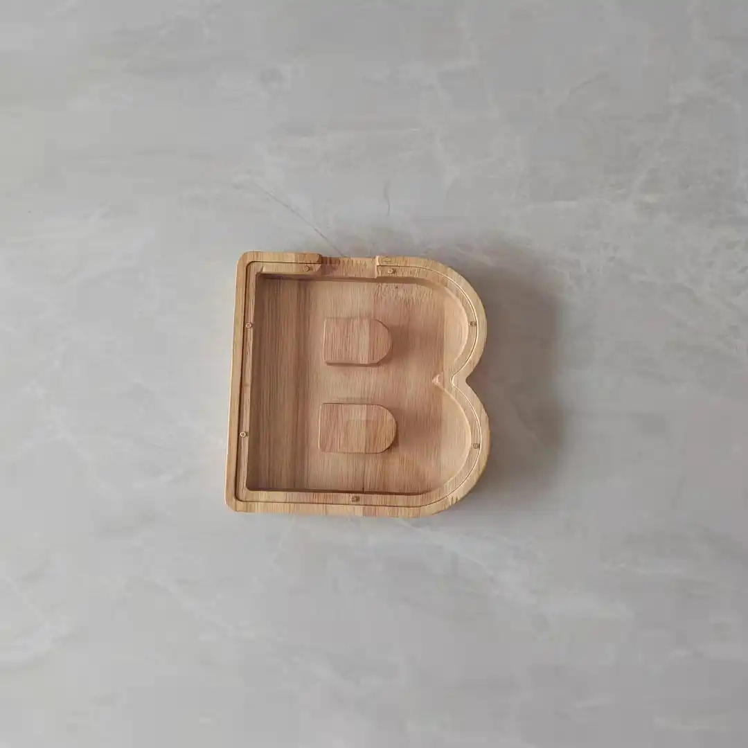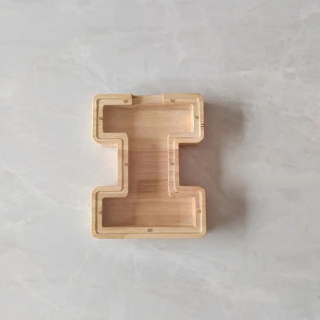 Personalized Wooden Letter Piggy Bank has the following product features: