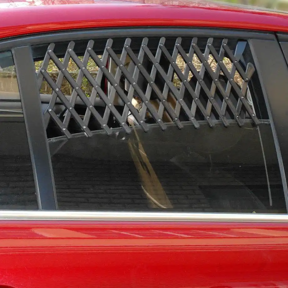 I actually bought these to fit in my windows to keep the cat from climbing the screens. On bearable temperate days, I wanted to open my windows for a fresh breeze, but until I saw these, I could only open the windows a crack. I am sure they work great in a car/truck. They’re durable and versatile. What a great product!