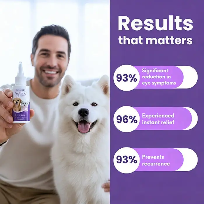 Many pet parents notice improvement in redness, cloudiness, and comfort within 1–3 weeks of consistent use.