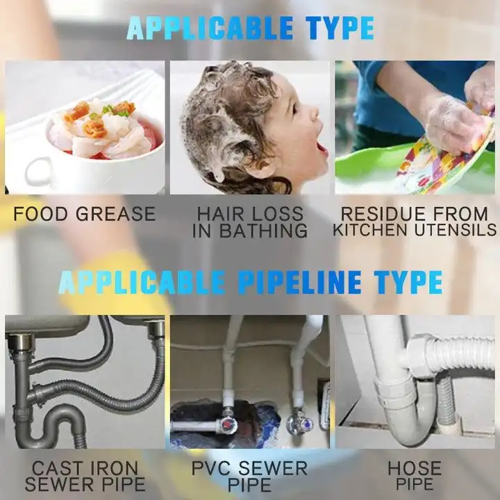 Dissolves grease, hair, oils, soap paper products easily;Perfect to use on pipes, toilets, sinks, tubs and in other main drain lines;Made of a non-corrosive formula that’s safe on septic systems;Uses its high density to cling to pipes and liquify drain obstructions;Non-corrosive, no caustic and odorless formula.