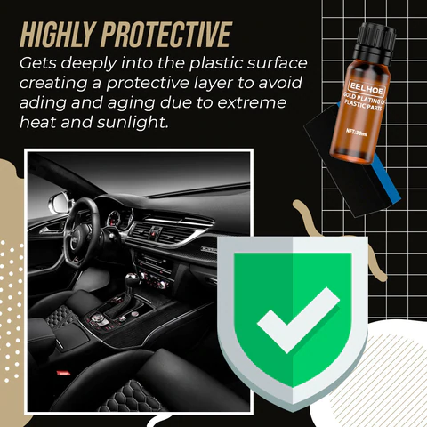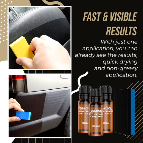 Instantly leaving unwanted marks and dirt while creating a brand new look! Specially formulated to work on fading surfaces, to prevent aging and discoloration. Suitable for all types of vehicles, this Plastic Part Gold Plating Agent is made of environmentally friendly materials, has an oil-free formula, is absolutely non-toxic and safe to use. With this strong polymer layer, it extremely protects your plastics from the sun, water, smoke and other harmful pollutants.