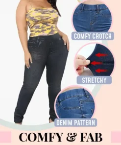 The Toning Jeans Leggings look like a pair of fitted jeans but feel like buttery soft yoga leggings! Flexible, smart looking & figure-flattering for curvy girls! The 3D heart-shaping push up stitching accentuates your curve while reducing your waistline with extra wide waistband. Made from ultra-soft, stretchy yet opaque fabric, these jeans leggings hugs your legs with high flexibility of movement. Free of digging buttons, zippers and studs – no more struggles to fit in with our “Jeans”.