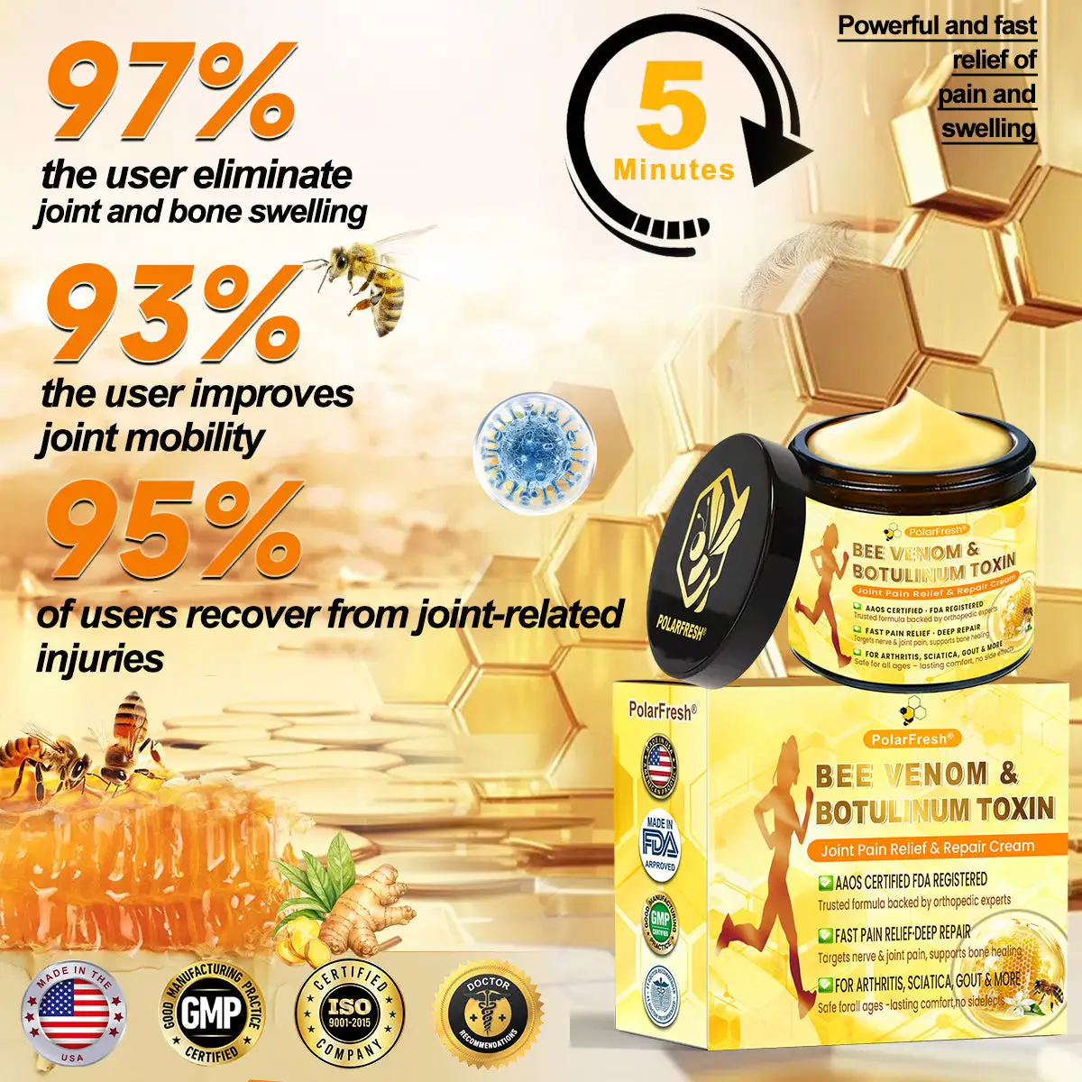 PolarFresh® Bee Venom & Botulinum Toxin Joint Pain Relief & Repair Cream (1/2/4/6/10 jars).