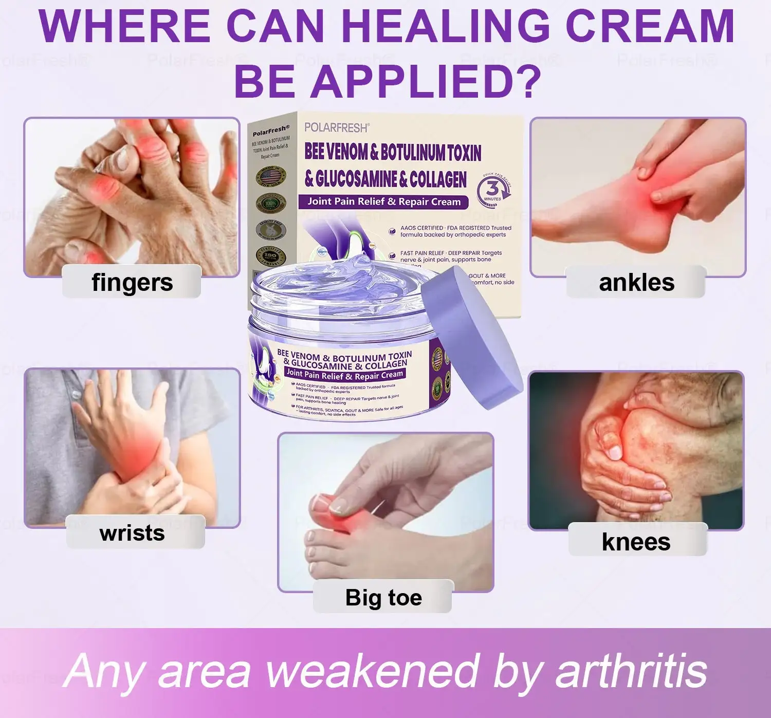 The POLARFRESH® Botulinum Toxin & Bee Venom Pain-Relief Bone Healing Cream is known for its effectiveness in treating a variety of orthopedic issues.