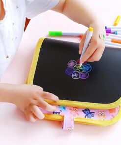 The doodle pad is 8×8 inches in size and has 14 pages, giving 12 watercolor pens. The watercolor pen is colorful, dust-free and non-toxic. After use, wipe it gently with a wet tissue to make it clean and reusable! It can stimulate your child’s imagination. Give it to your child as a gift.