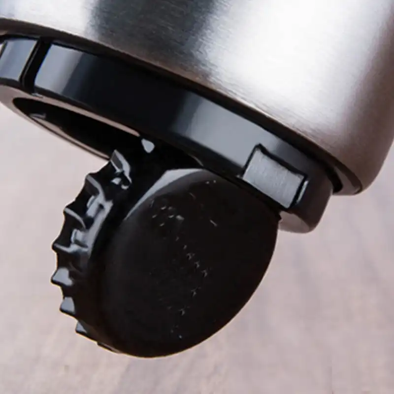 The biggest breakthrough to get rid of the painful feeling of working overtime from using a standard bottle opener when opening a capped bottle. It has a spring-loaded push mechanism that effortlessly opens and releases the lid. Opens the bottle faster than other bottle openers. It’s a great tool to use at a party, especially if people can’t wait to get that bottle of cold beer.