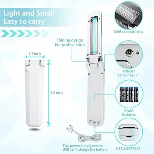 Portable UV-C Virus Sterilizer is specialize design to kill virus, mite, bacteria.The scientist has been scientifically proven to kill 99.9% of germs using its sanitizing, germ-killing function.