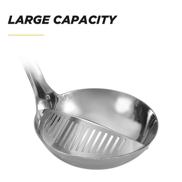 This spoon with integrated design, you can ladle the soup and filter out the soup effectively, and the tail part of spoon has a hanging hole, which is very convenient for hanging