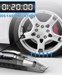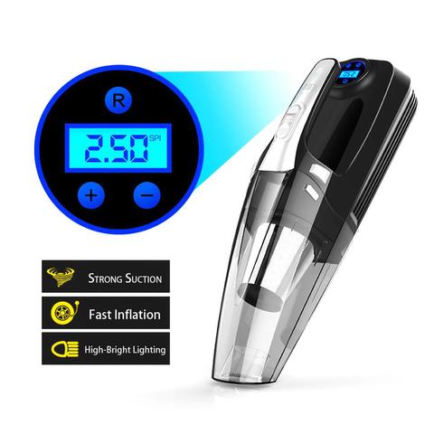 Powerful Vacuum Cleaner and Air Compressor Tire Inflator with LED Light has the following product features: