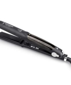 Made of a high-end rubber matte surface for comfortable holding, worldwide dual voltage appliance and the removable water tank for easy refills. This straightener has a 60 minute shutdown for safety, including a 360 degree swivel salon grade cord for accessibility!