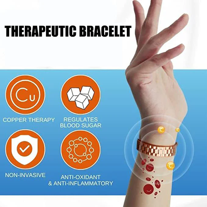 Introducing the Therapeutic Bracelet, a unique piece of therapeutic bracelet that combines fashion and function to help people with diabetes manage their blood sugar levels. Made from high-quality copper, this bracelet is designed to release copper ions into the body, which may help to improve insulin sensitivity and regulate blood sugar levels.
