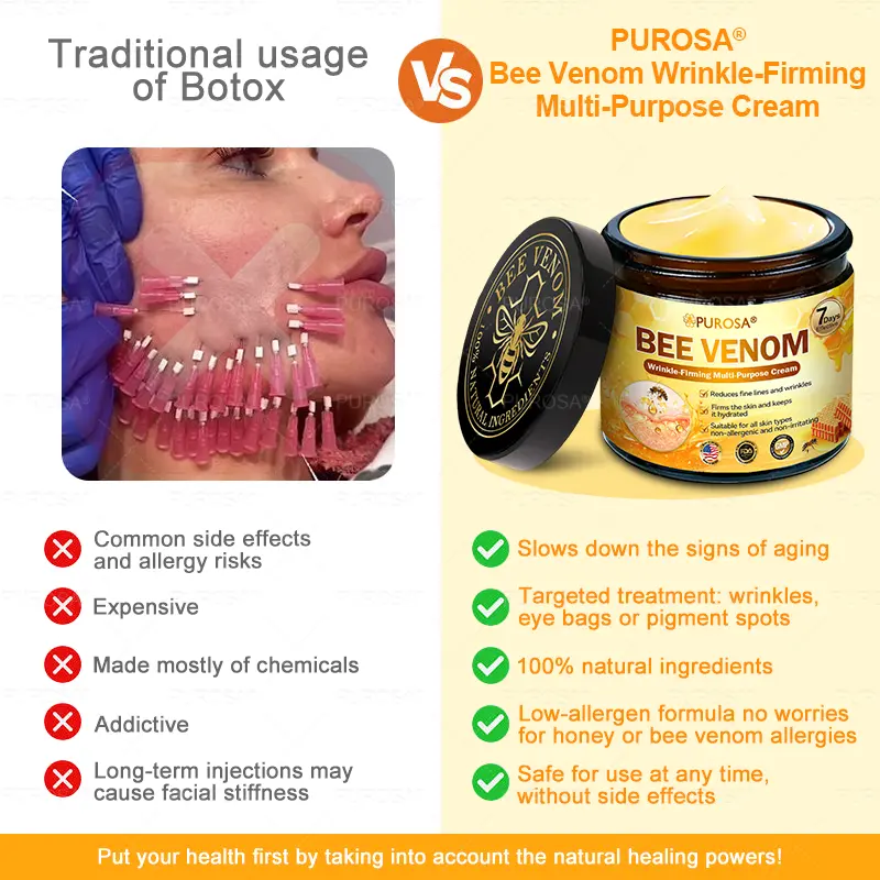 ✅ Suitable for All Skin Types: Regardless of your skin type, PUROSA® Bee Venom Wrinkle-Firming Multi-purpose Cream is designed to cater to everyone, including those with sensitive skin.