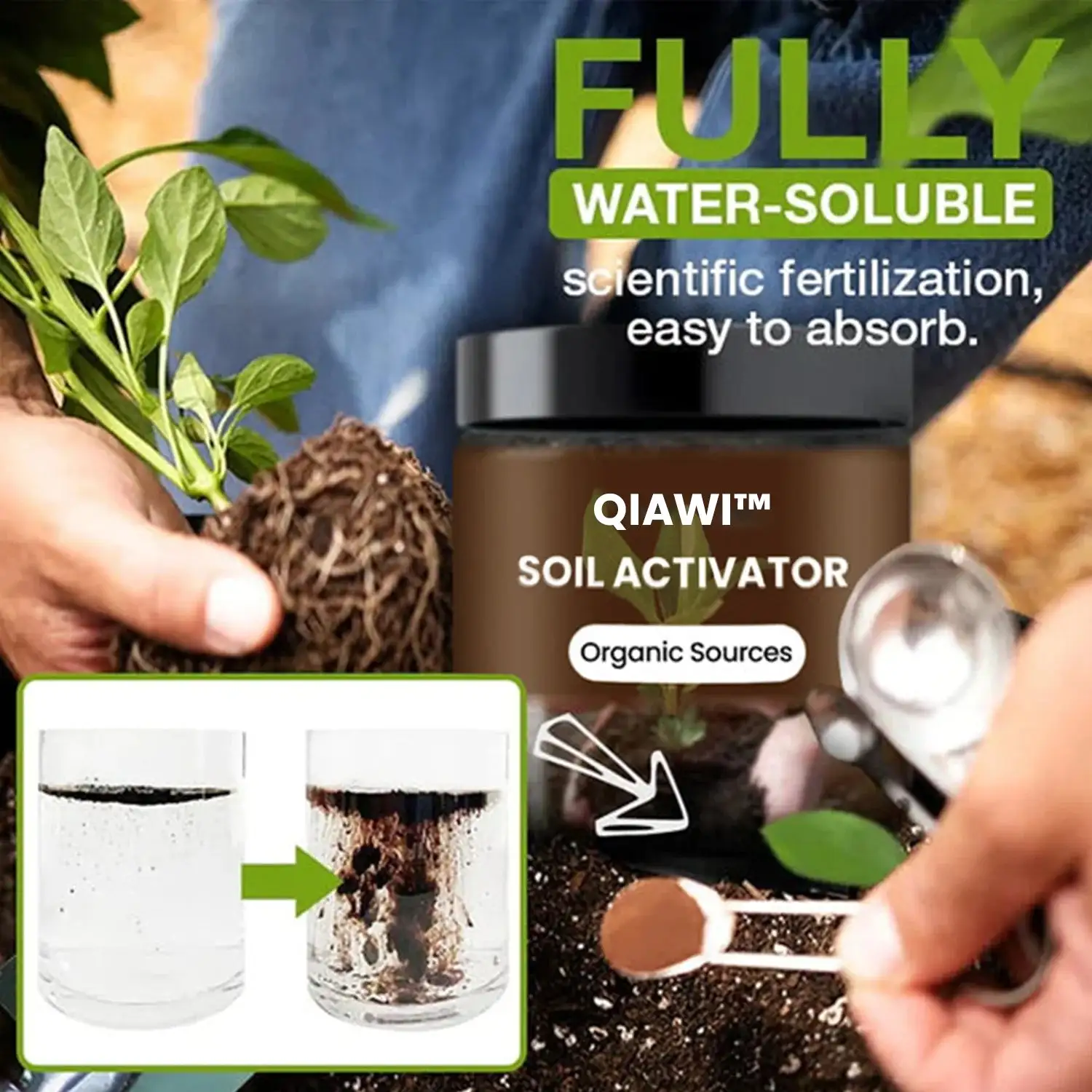 QIAWI™ Soil Activator is composed of organic ingredients that are safe for the environment and beneficial for your plants. The primary components include mineral potassium fulvic acid and microbial inoculants, which are derived from natural sources. These organic elements work together to enrich the soil, promoting sustainable and eco-friendly gardening practices. By opting for QIAWI™, you are choosing a product that supports not just your garden, but the planet as well.