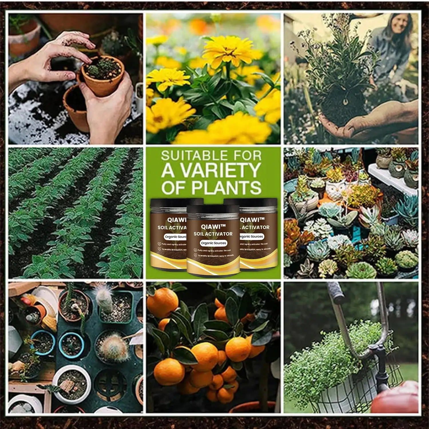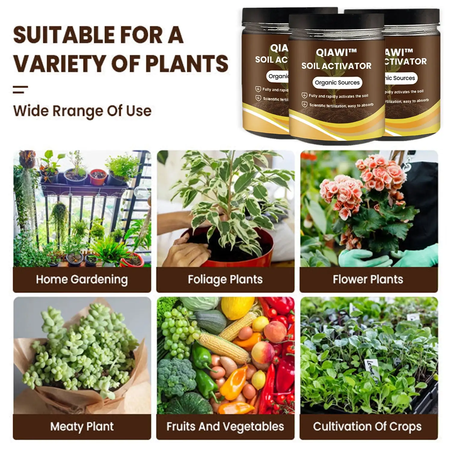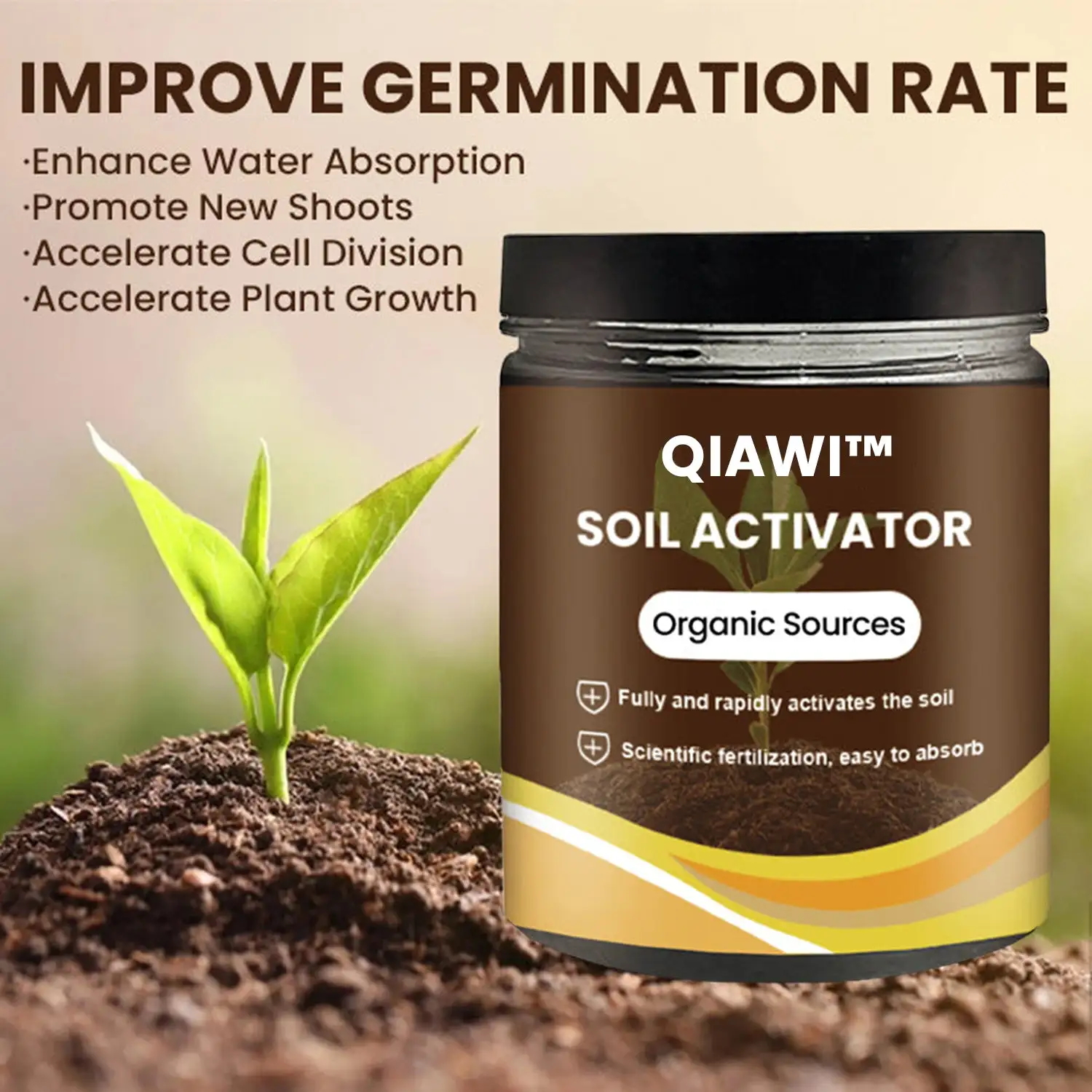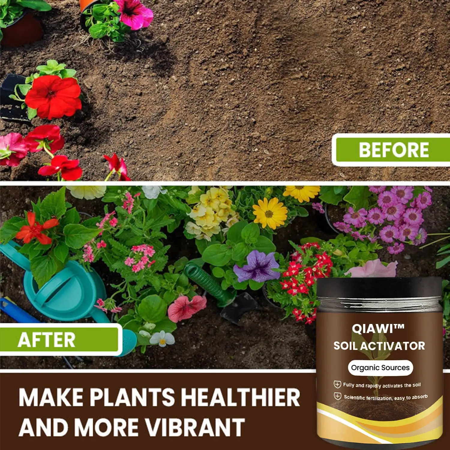 QIAWI™ Soil Activator creates an optimal environment for plant growth, allowing for healthier, more vigorous plants. Perfect for home gardeners and professional growers alike, this all-in-one solution transforms poor soil conditions into fertile grounds, promoting robust plant health and accelerated development.