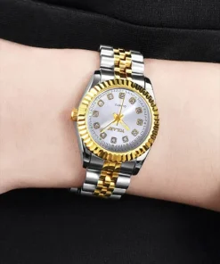 1pcs Women’s Fashion Round Room Gold Steel Band Quartz Iwc Wristwatches